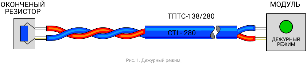 В дежурном режиме ПИМ-530Д контролирует ток в цепи, состоящей из последовательно соединенных проводников термокабеля, расположенного в защищаемой зоне, и оконечного резистора 10 кОм.